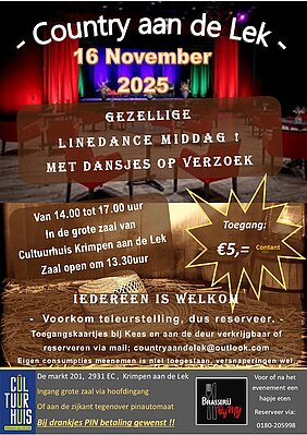 Zondag is er weer een gezellige linedance middag in de theaterzaal, met dansjes op verzoek!